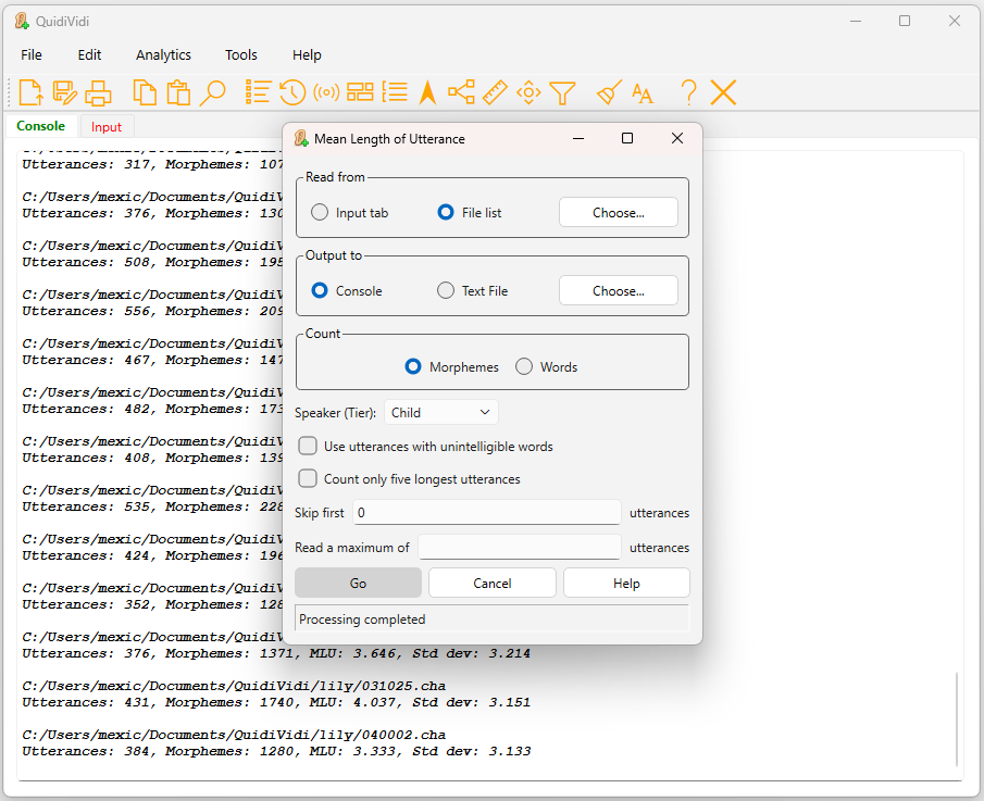 QuidiVidi is a non-indexing side project of Picardy Indexing. It is used to analyze linguistic transcripts encoded in CHAT format.